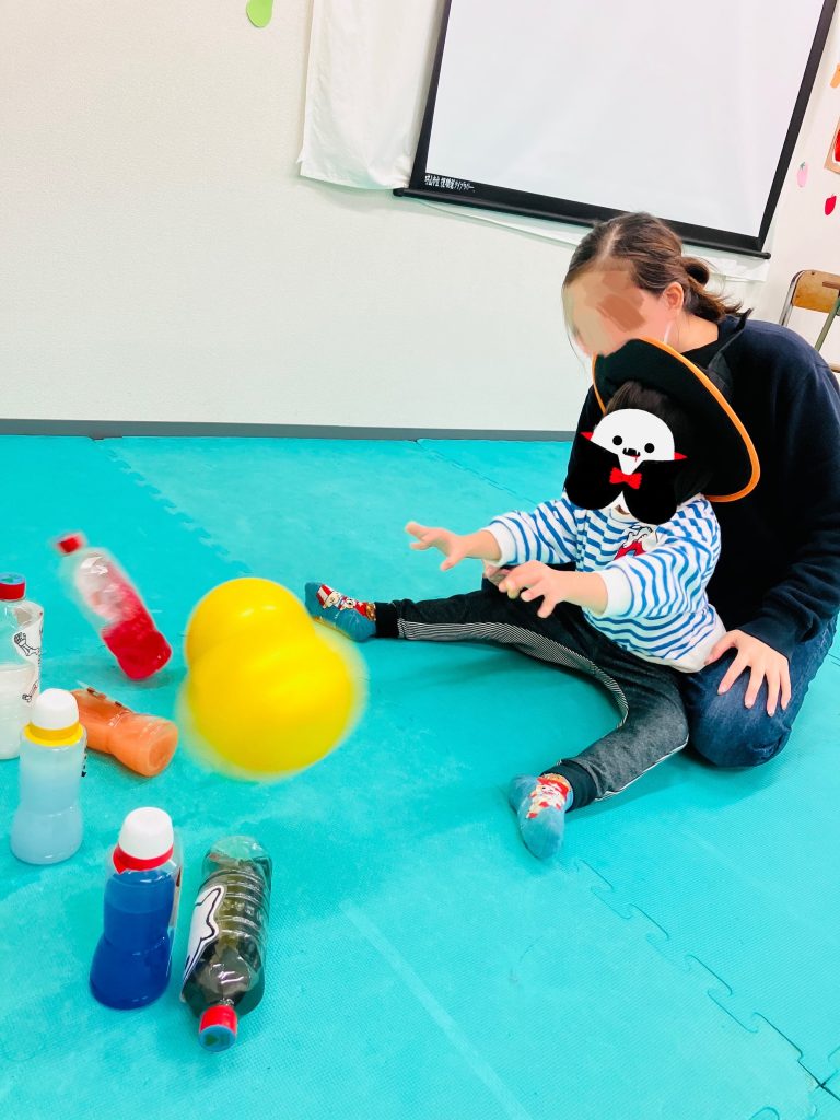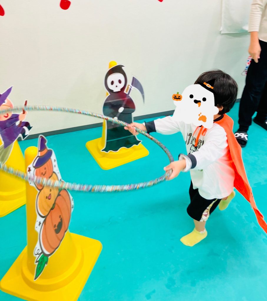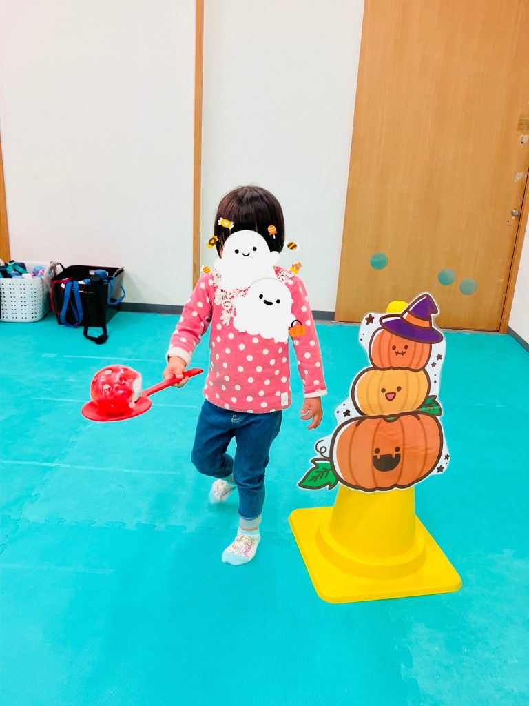 そしてこちらは活動の様子です。すべてハロウィン仕様のボーリングとビッグ輪投げとスプーンリレーです。