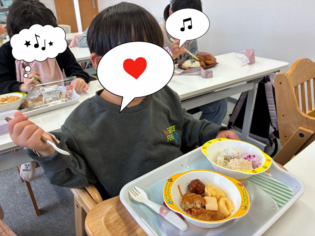 みんなのお弁当どれもおいしそう!自分で選んで買った昼食を、幸せそうに食べてくれていました。