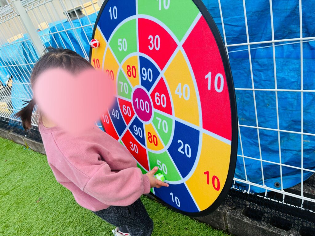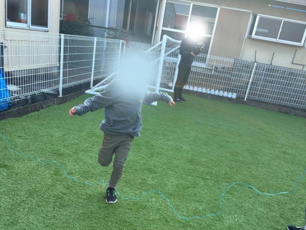 大繩を大きくジャンプしたり、サッカーや的あてなど、