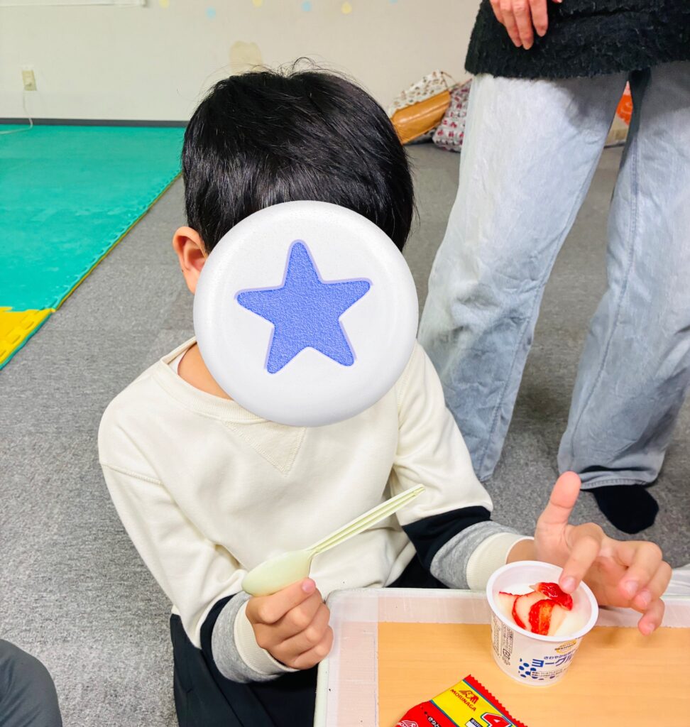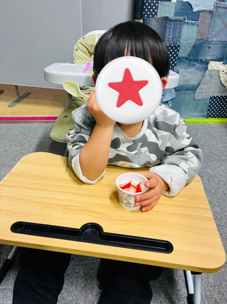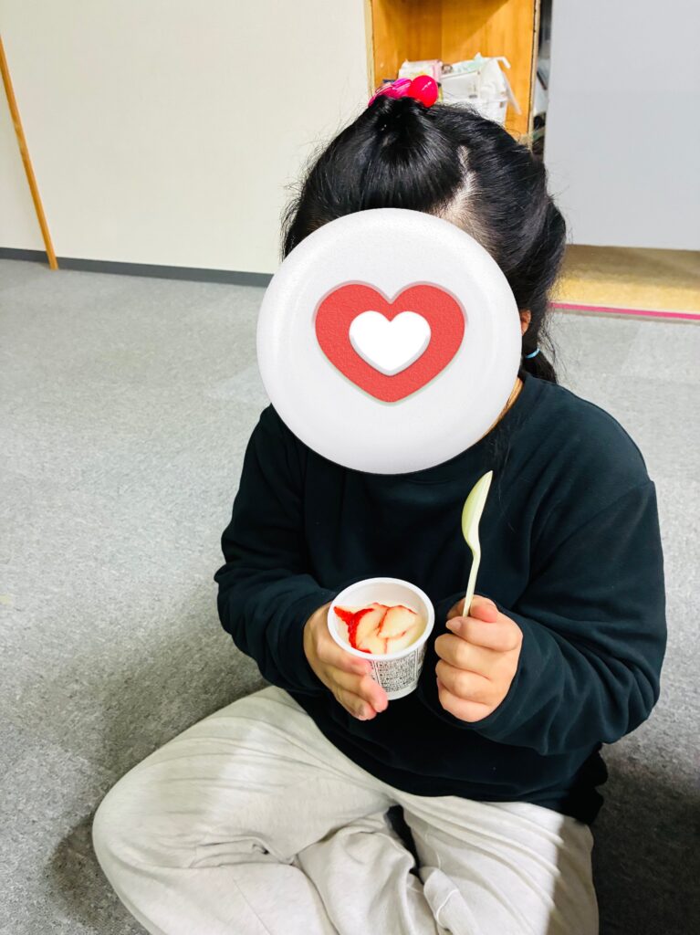 おやつにはヨーグルトとイチゴをみんなで食べました!